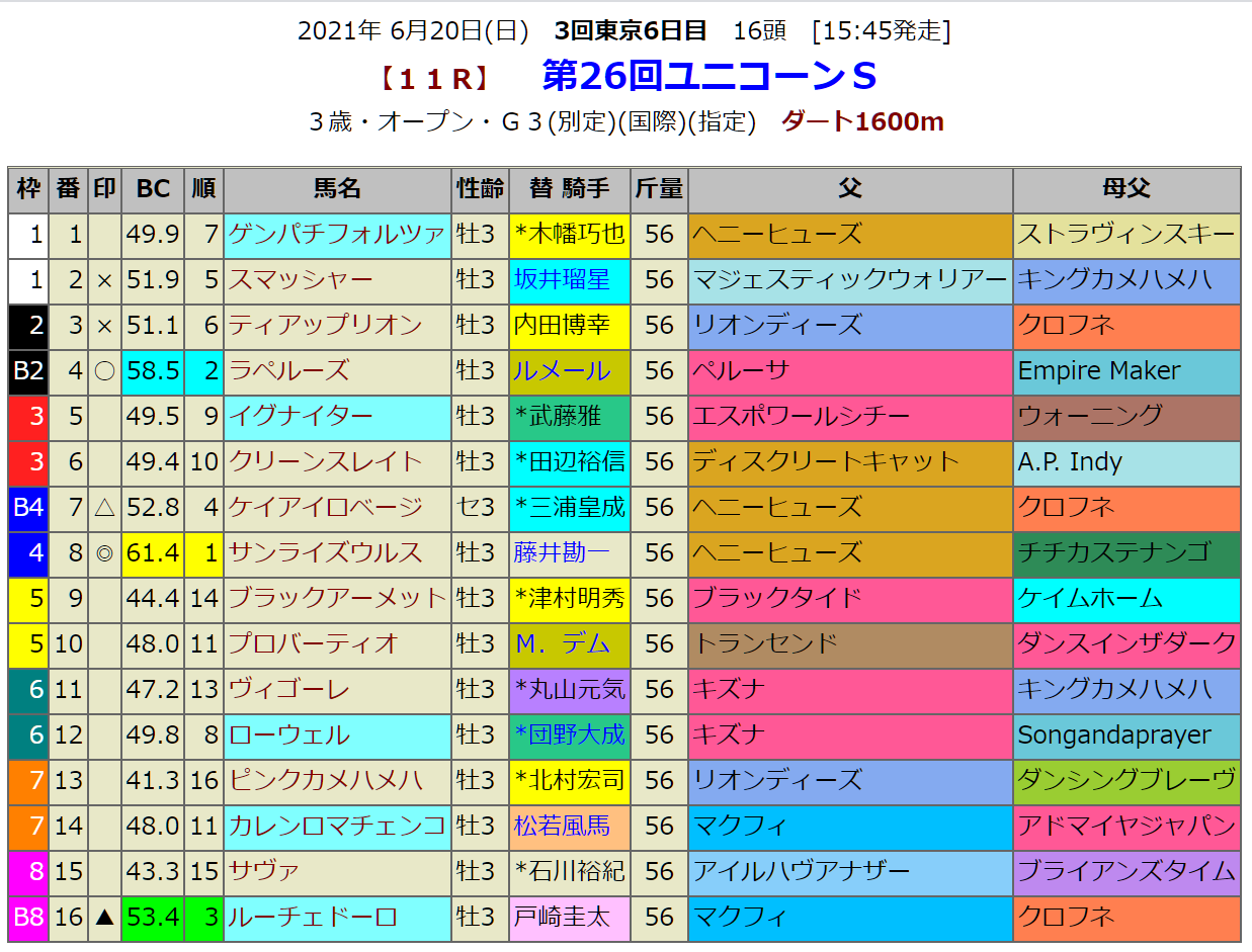 3歳のダート重賞のユニコーンSが行われます。人気上位馬、1~3番人気の馬が良く勝つレースです。