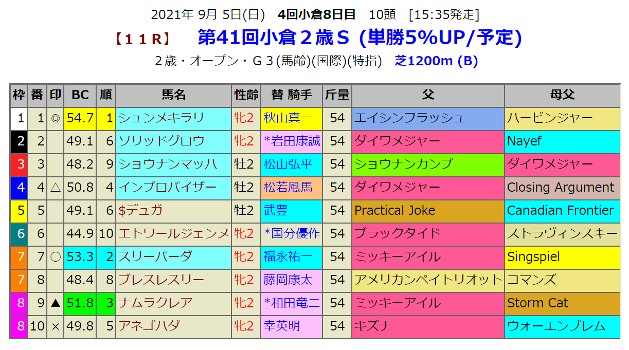 いよいよ夏競馬最終日です。小倉雄2歳重賞レースは短距離戦です。