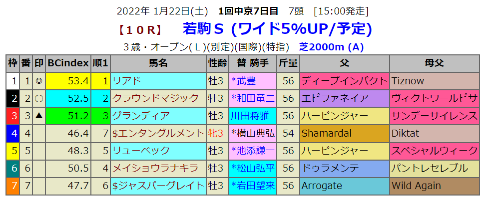 土曜日に重賞レースが無い週が続きます。とりあえず3歳重賞、リステッド競争のワイドがJRAプレミアムなので明日の若駒Sを見てみると・・・7頭の出走です。非常に寂しい限りです。そういえば先週は4頭でレースが行われていましたが・・そもそも毎年このレースは少頭数だし、かといってデビューや調整が遅れた馬が狙ってくるレースでもあります。過去にはマカヒキも勝ってるレースです。