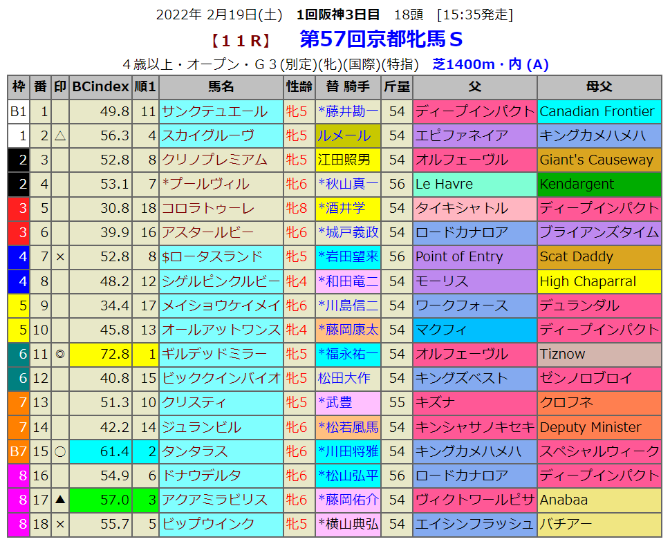 カーリングを観戦しながらのブログ更新です。前回のオリンピックでルールは大体理解して、今大会では解説者の殆どわかるところまできた。さて今週はG1ウィーク、フェブラリーSです。今年最初のG1ですから何としても当てたいところですが・・・。その前に京都牝馬Sの予想です。