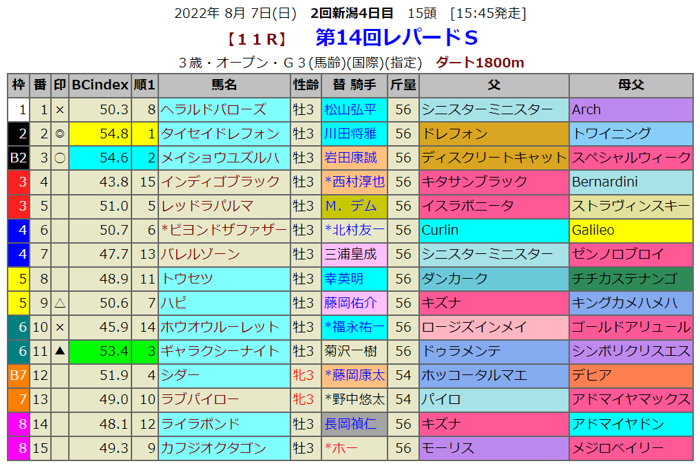 今日のBC-indexはまずまずの成績でした。取り上げたダリア賞は◎(指数1位)-▲(指数3位)での決着でした。この勢いで明日のダート重賞の方も的中させたいのですが・・。3歳重賞の方をここでは取り上げます。