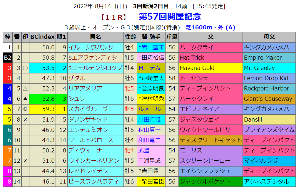 お盆は何かと忙しいのですが、こうやってBLOGを書いて馬券も買い続けるのは自分ながら馬券を買うのが習慣化されてるという事を再確認してます。あすのサマーシリーズの重賞は新潟も小倉もBC-Z対象馬なのでどちらも勝負したいレースです。