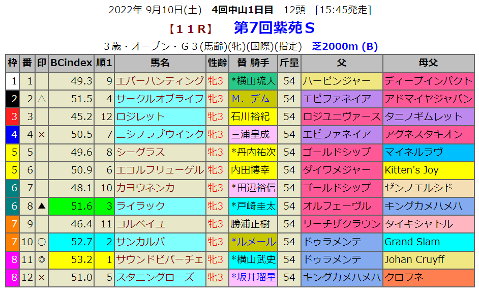 いよいよ秋競馬突入です。競馬の盛り上がるシーズンです。土曜日に重賞があったりします。競馬が充実してきます。スタートは3歳牝馬重賞紫苑Sです。秋華賞を見据えたレースになります。17年の勝ち馬ディアドラは秋華賞を勝ち、さらにその後海外でも活躍しました。昨年の覇者ファインルージュは秋華賞2着と好走しています。