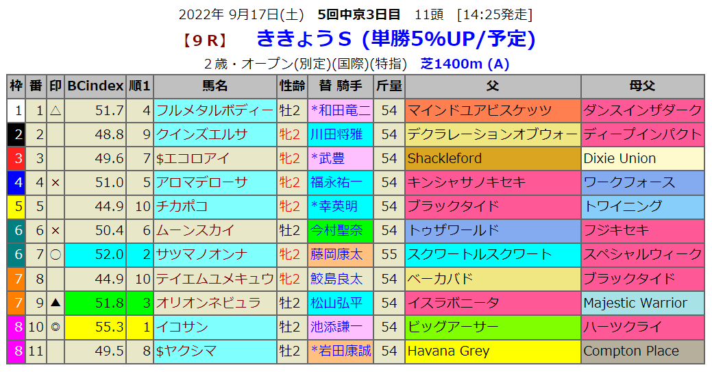 台風の影響が気になる三日間開催です。日曜日はローズS、月曜日はセントライト記念と3歳馬の最後の一冠へのトライアルレースがあります。土曜日は2歳オープン特別のききょうSに注目です。