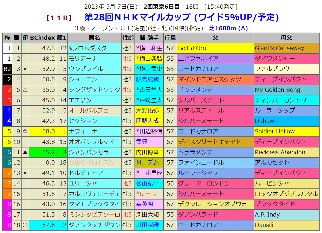 ゴールデンウイークもいよいよ最終日です。3歳G1三つ目のレースです。今年のNHKマイルCにはシルバーステート産駒が3頭出走ですが、この産駒が血統指数予想の分かれ目になります。