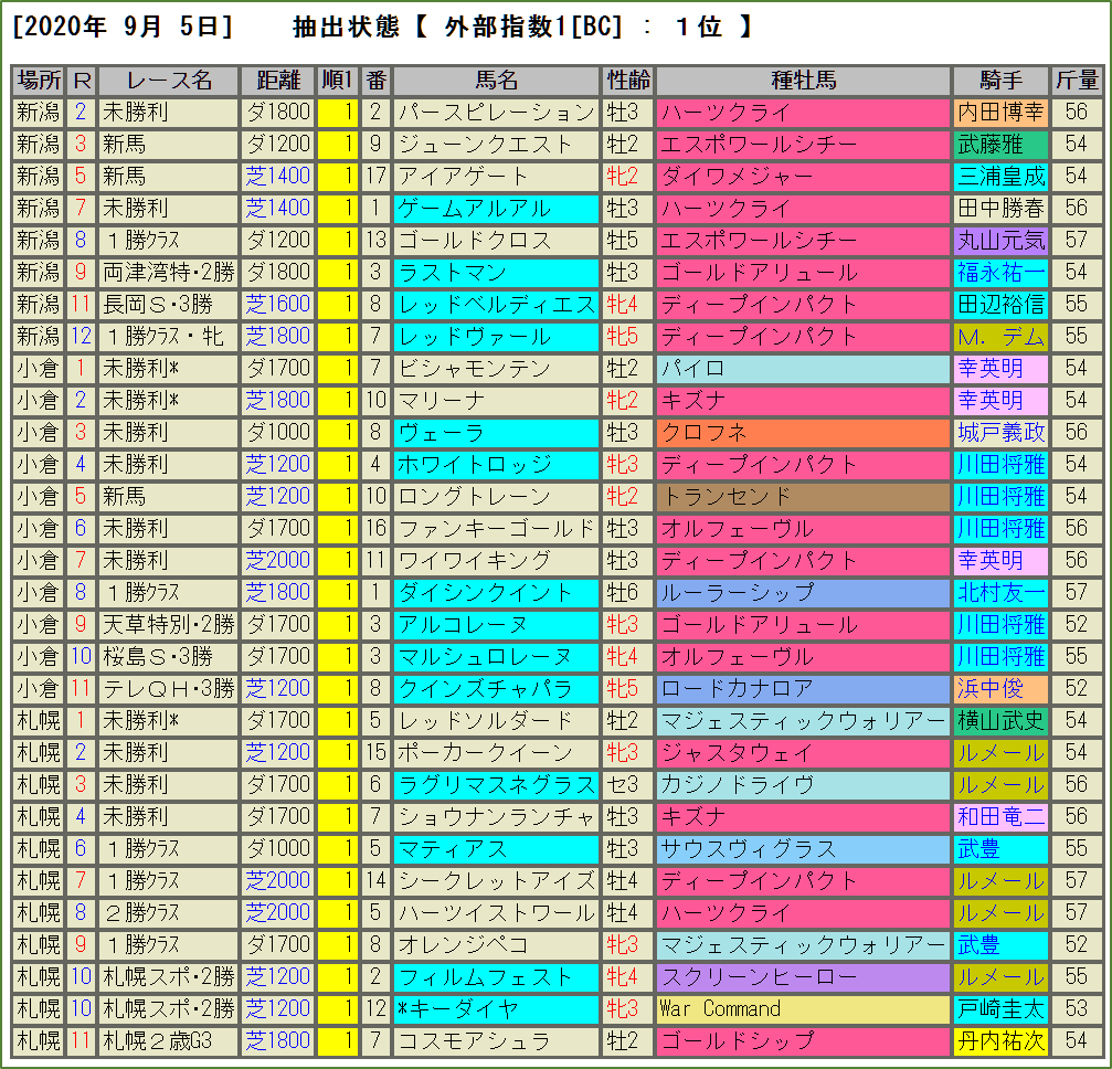 BC-index1位馬を全て公開(TARGETがなくても見易い!)