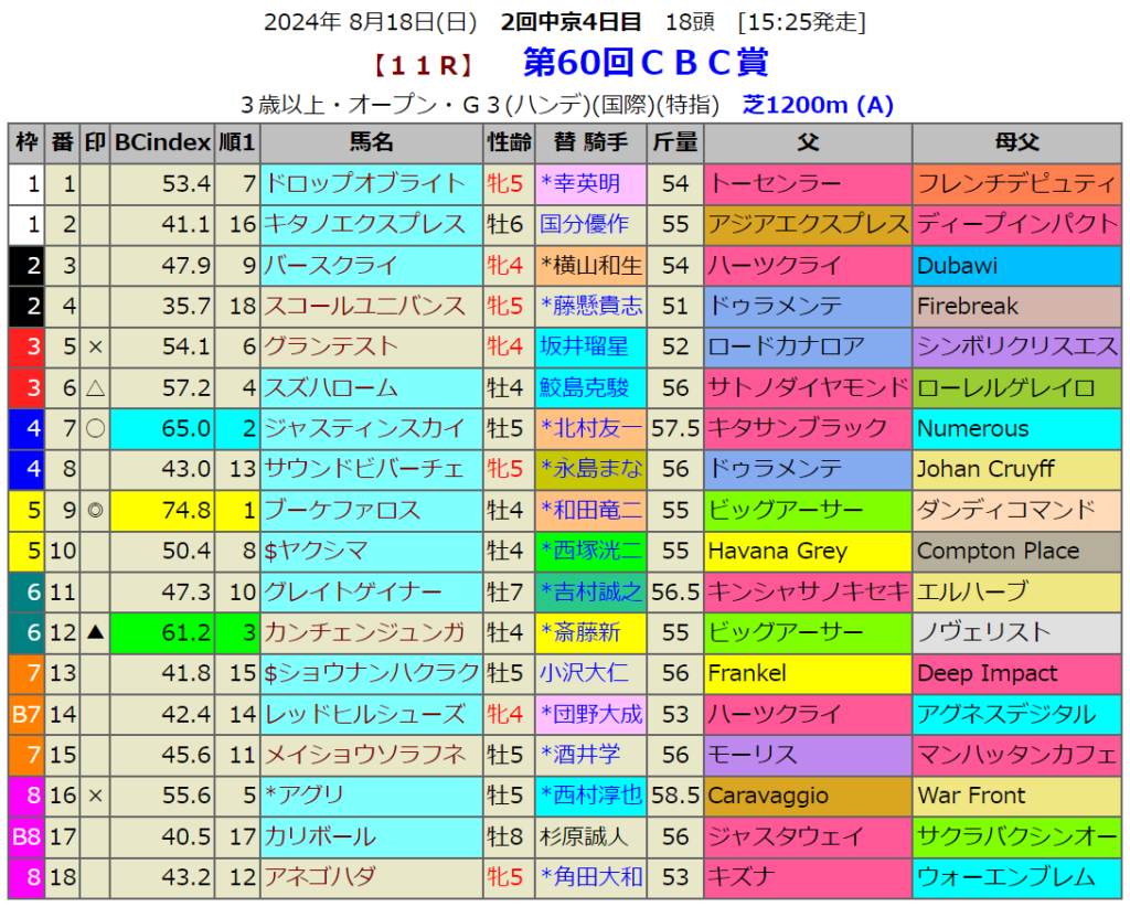 CBC賞の血統指数予想