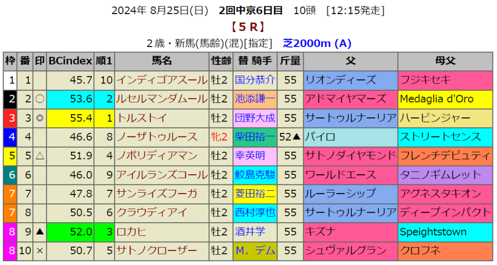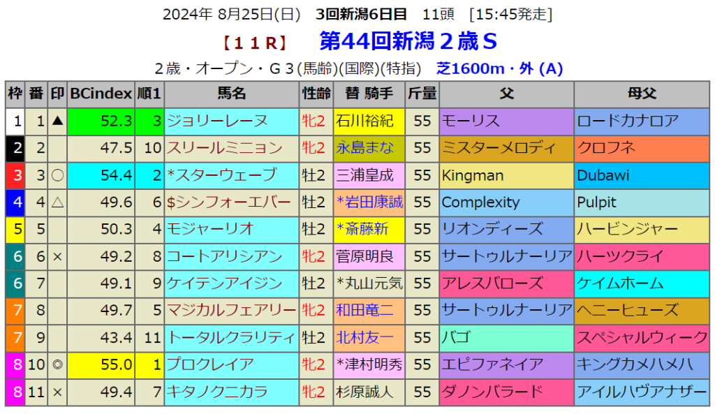 新潟2歳Sの血統指数予想
