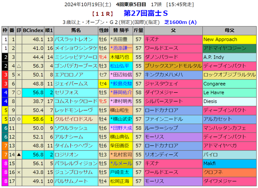 富士Sの血統指数予想