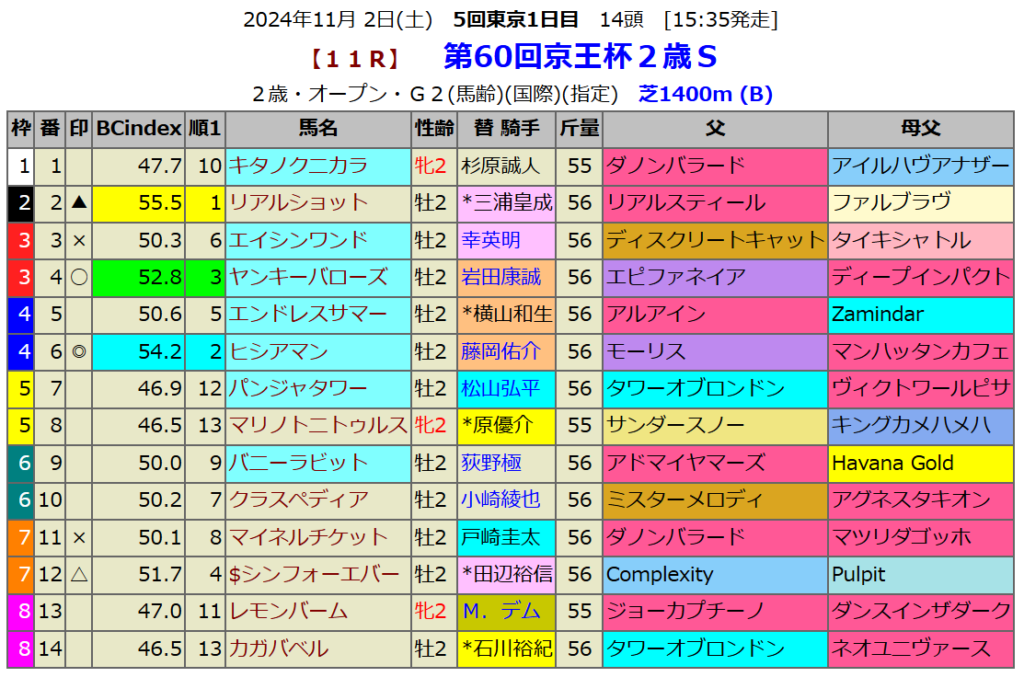 京王杯2歳Sの血統指数予想