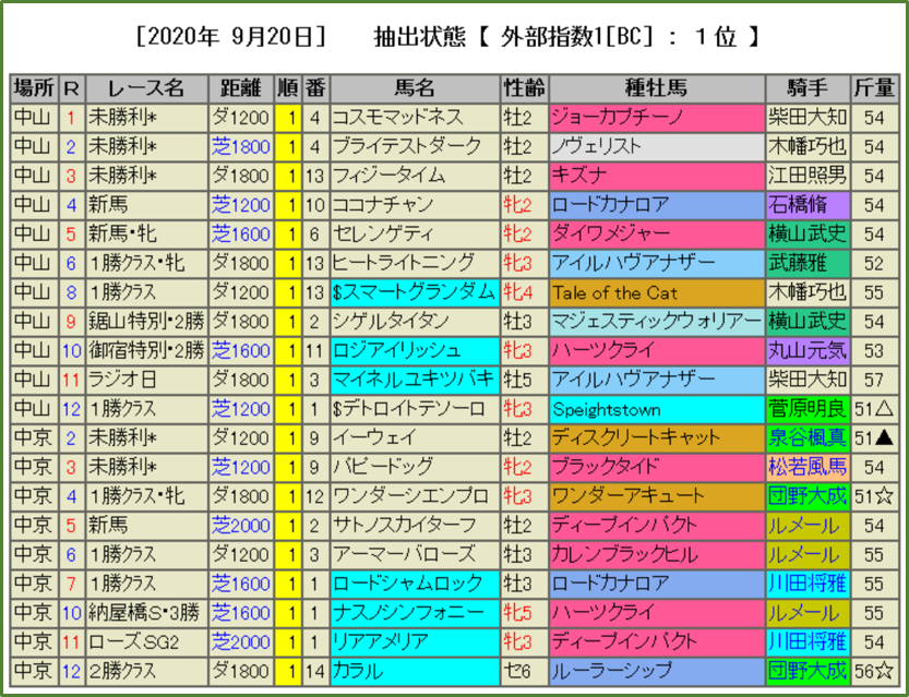 BC-index1位馬を全て公開(TARGETがなくても見易い!)