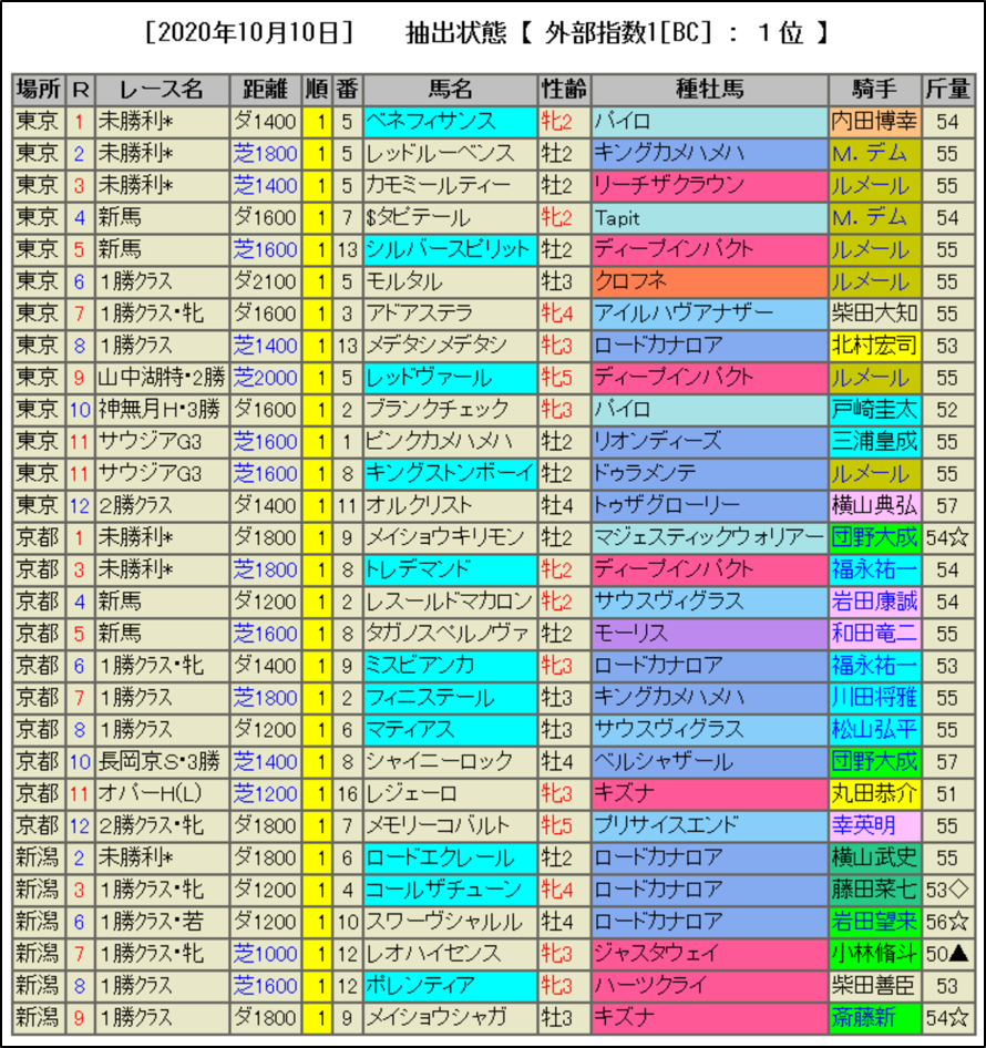 BC-index1位馬を全て公開(TARGETがなくても見易い!)