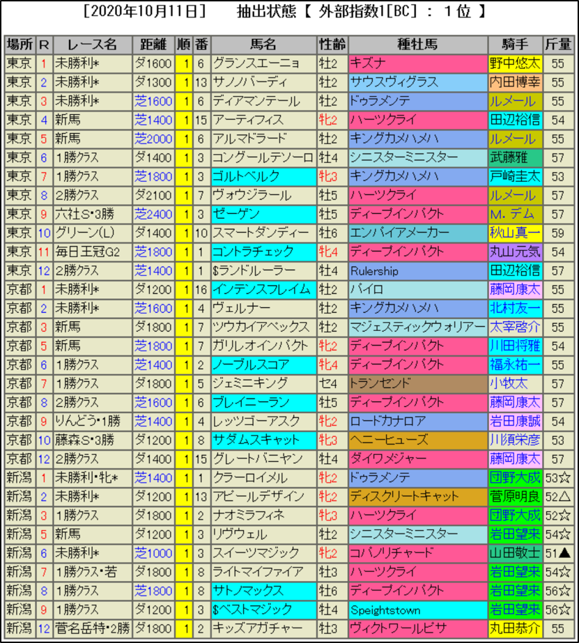 BC-index1位馬を全て公開(TARGETがなくても見易い!)