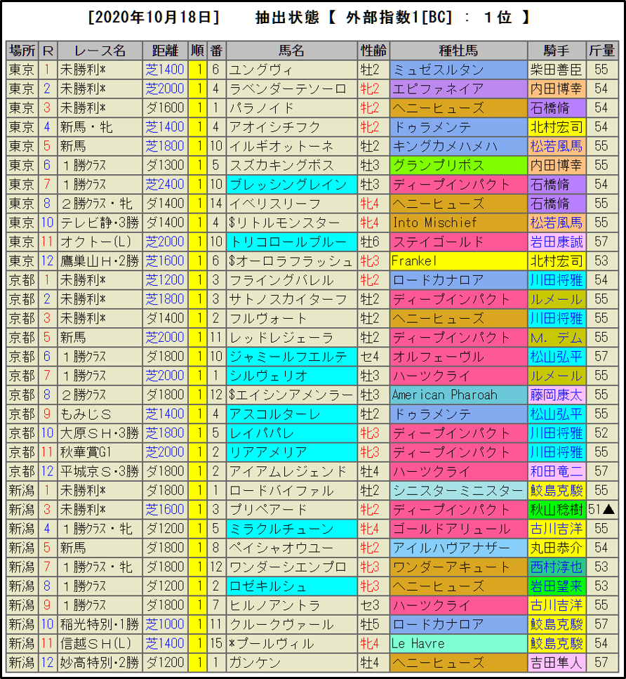 BC-index1位馬を全て公開(TARGETがなくても見易い!)