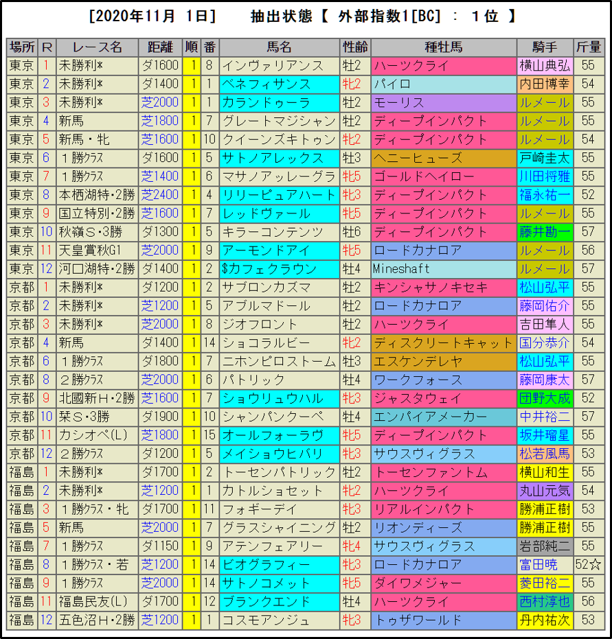 BC-index1位馬を全て公開(TARGETがなくても見易い!)