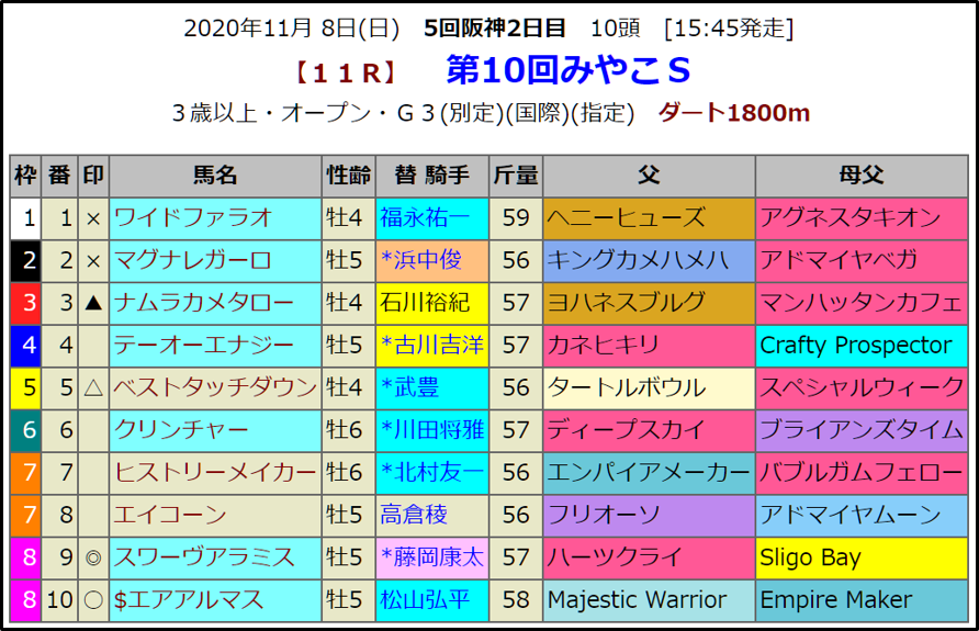 いよいよ明日は福島競馬場参戦です。そのための準備、レース検討が忙しいです。明日の重賞予想はみやこSです。このレースができた時は立て続けにG1馬を輩出しましたが、ここのところはそのような傾向はないようです。今年はどうでしょう。