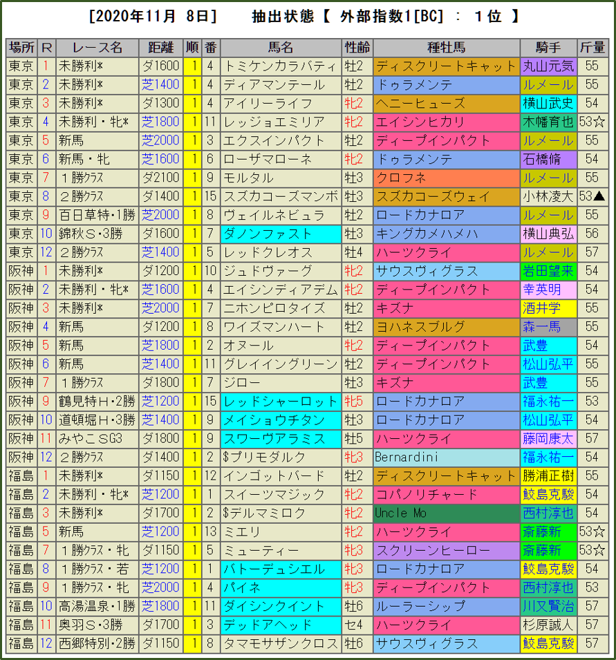 BC-index1位馬を全て公開(TARGETがなくても見易い!)