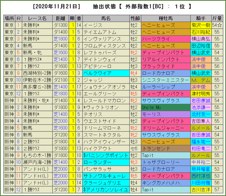 BC-index1位馬を全て公開(TARGETがなくても見易い!)