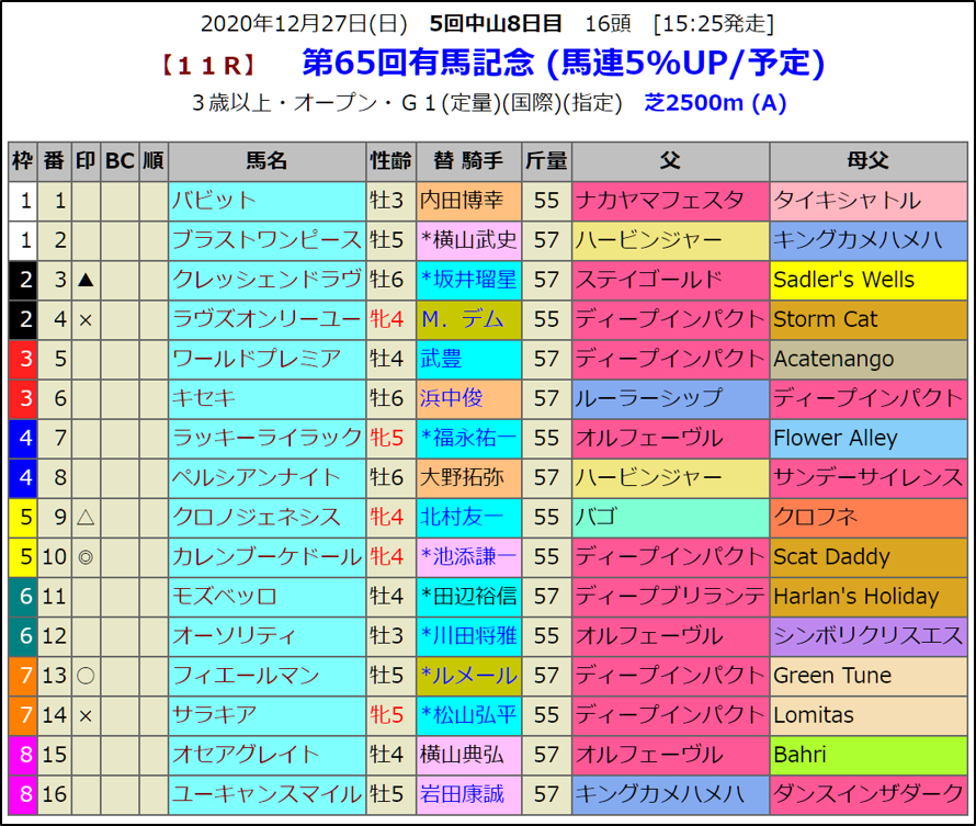 いよいよJRAも今年最後の競馬開催です。3冠馬がいないのがちょっと寂しい気もしますが、1年の締めくくりです。