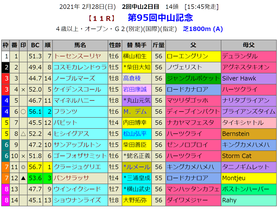 引退デーという事で、引退騎手と引退調教師の馬が注目になりますが、中山記念では前走ダートで叩き芝に戻ってきたゴーフォザサミットは一応押さえておかなければいけない馬です。